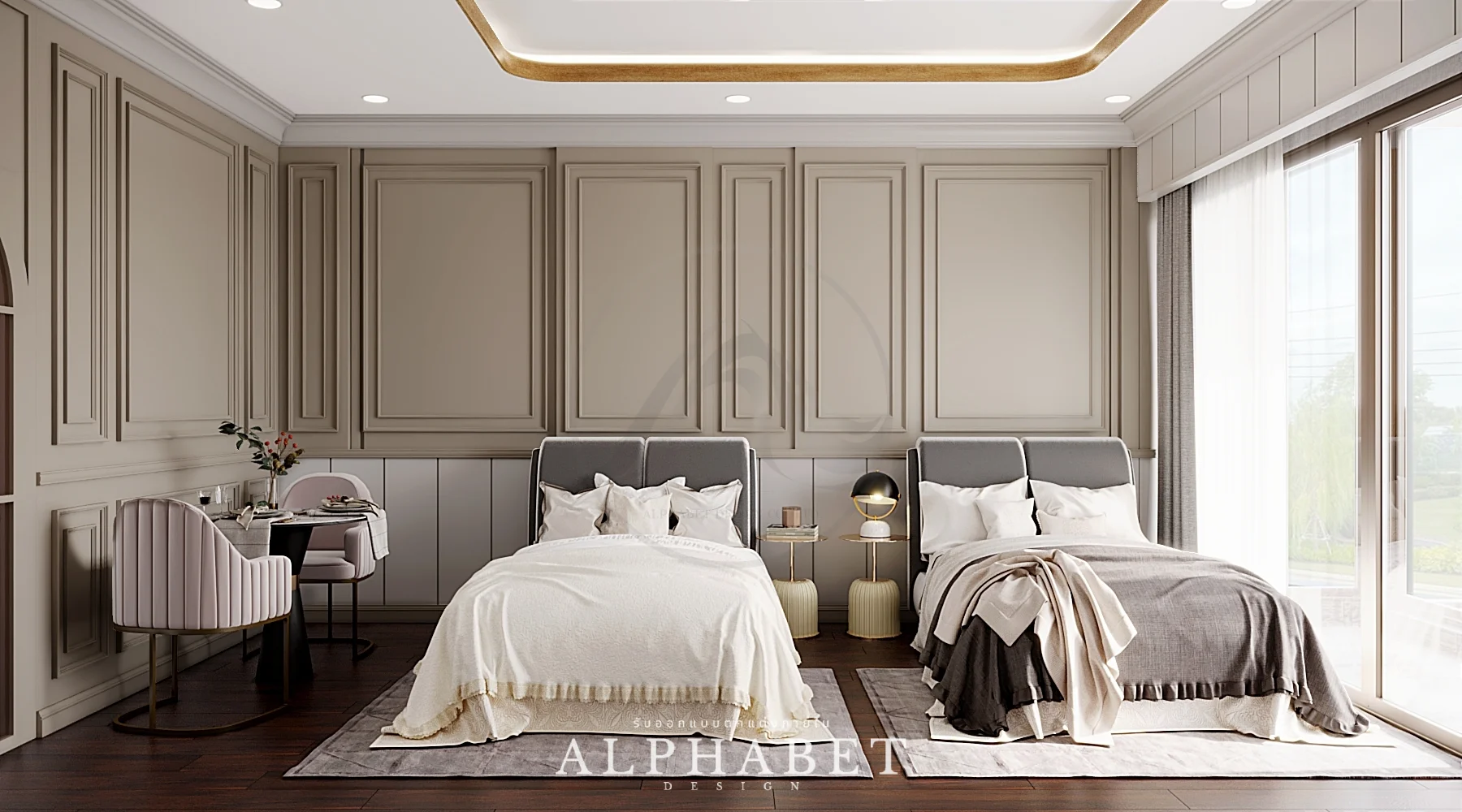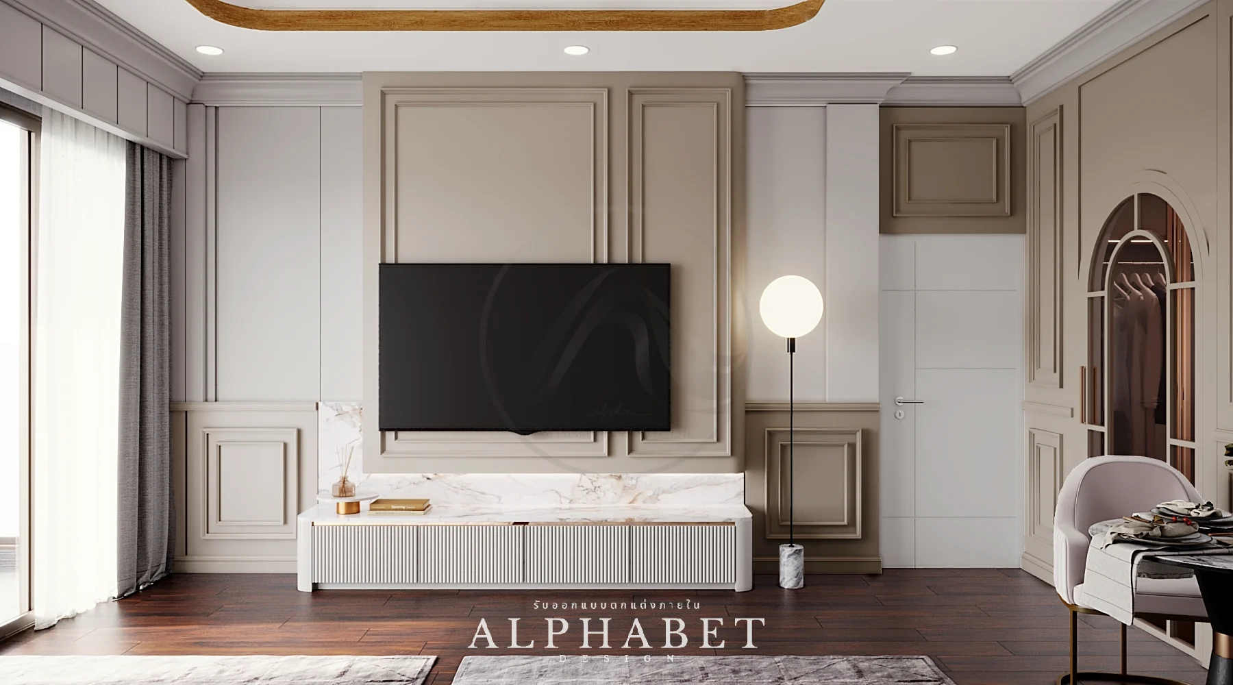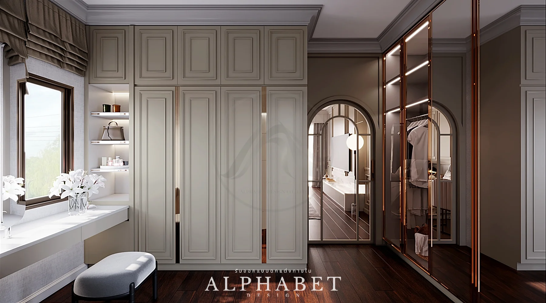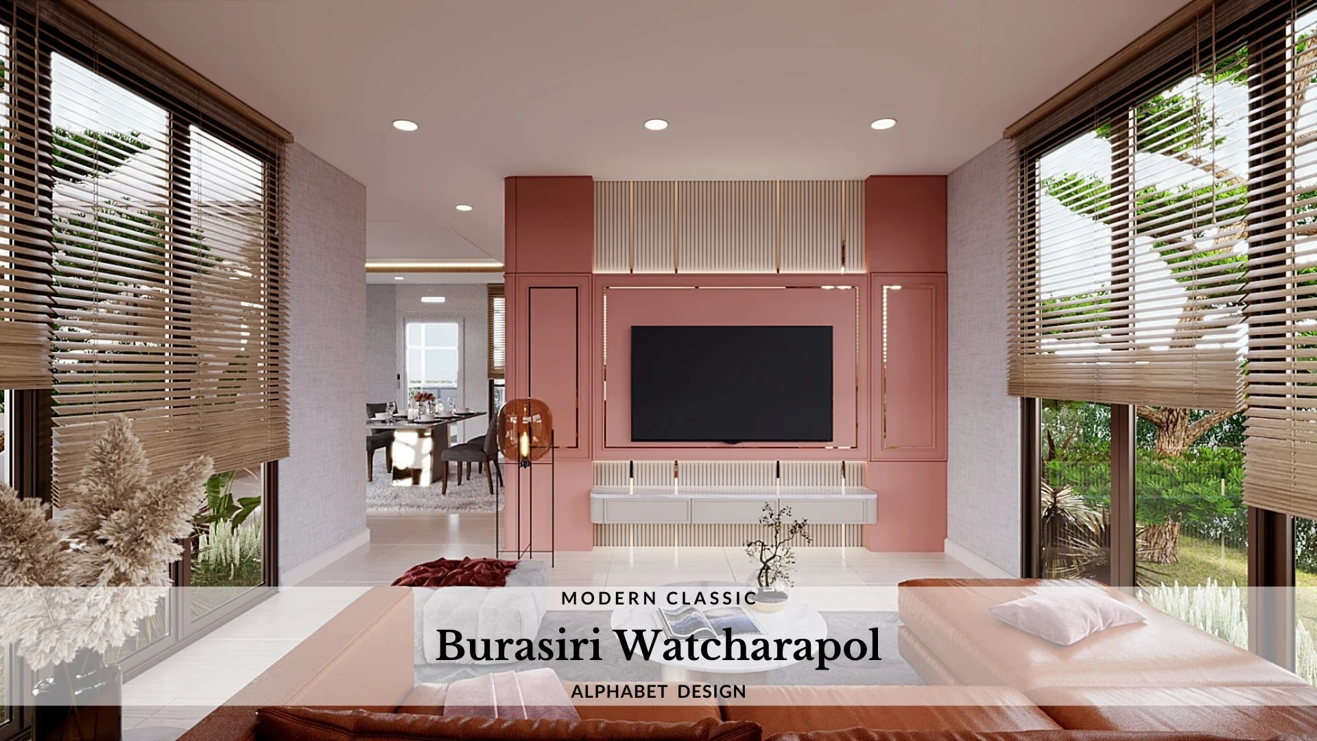 ผลงานออกแบบภายใน สไตล์โมเดิร์นคลาสสิค ซึ่งบ้านหลังนี้จะค่อนข้างมีหลายโทนสี เนื่องมาจากสมาชิกแต่ละท่านในบ้านจะมีความชอบที่แตกต่างกัน รวมถึงฟังก์ชั่นการใช้งานต่างๆภายในบ้าน ก็ถูกดีไซน์มาเพื่อตอบสนองการใช้งานของผู้สูงอายุหลายๆท่านในบ้านอีกด้วย