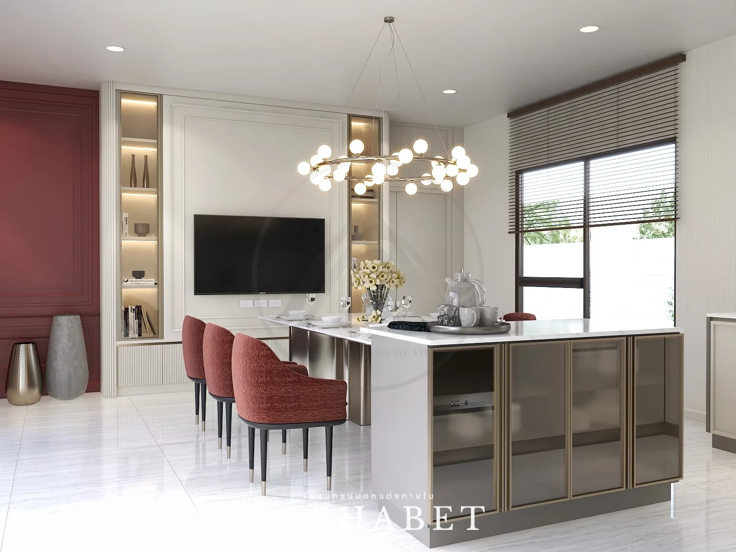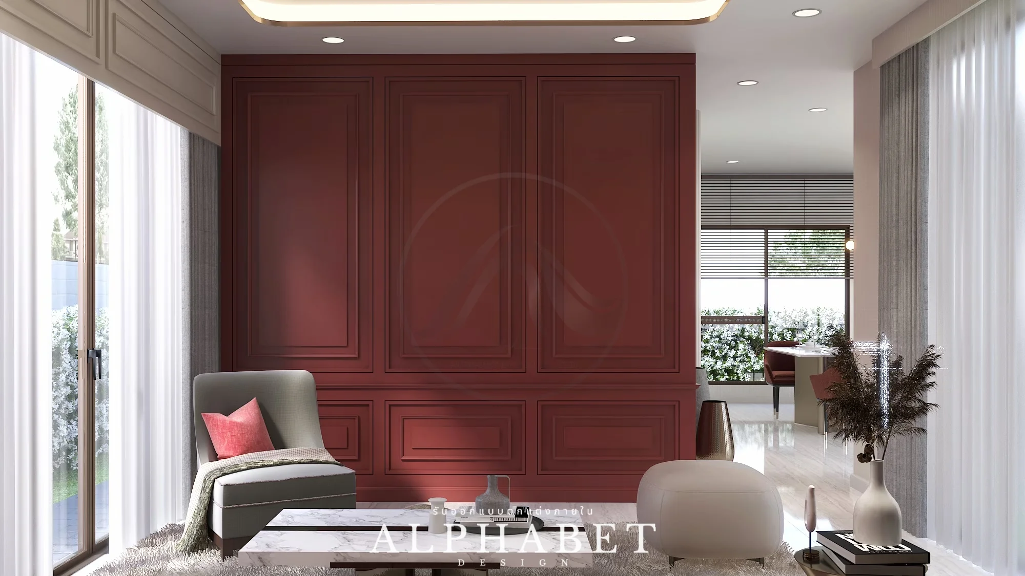 บ้านหลังนี้จะมีการเล่นสีสันที่ค่อนข้างชัดเจน เป็นการปรับโทนสีให้เป็นไปตามฮวงจุ้ยและความชอบของลูกค้า รวมถึงฟังก์ชั่นการใช้งานที่พร้อมอำนวยความสะดวกในการใช้งาน