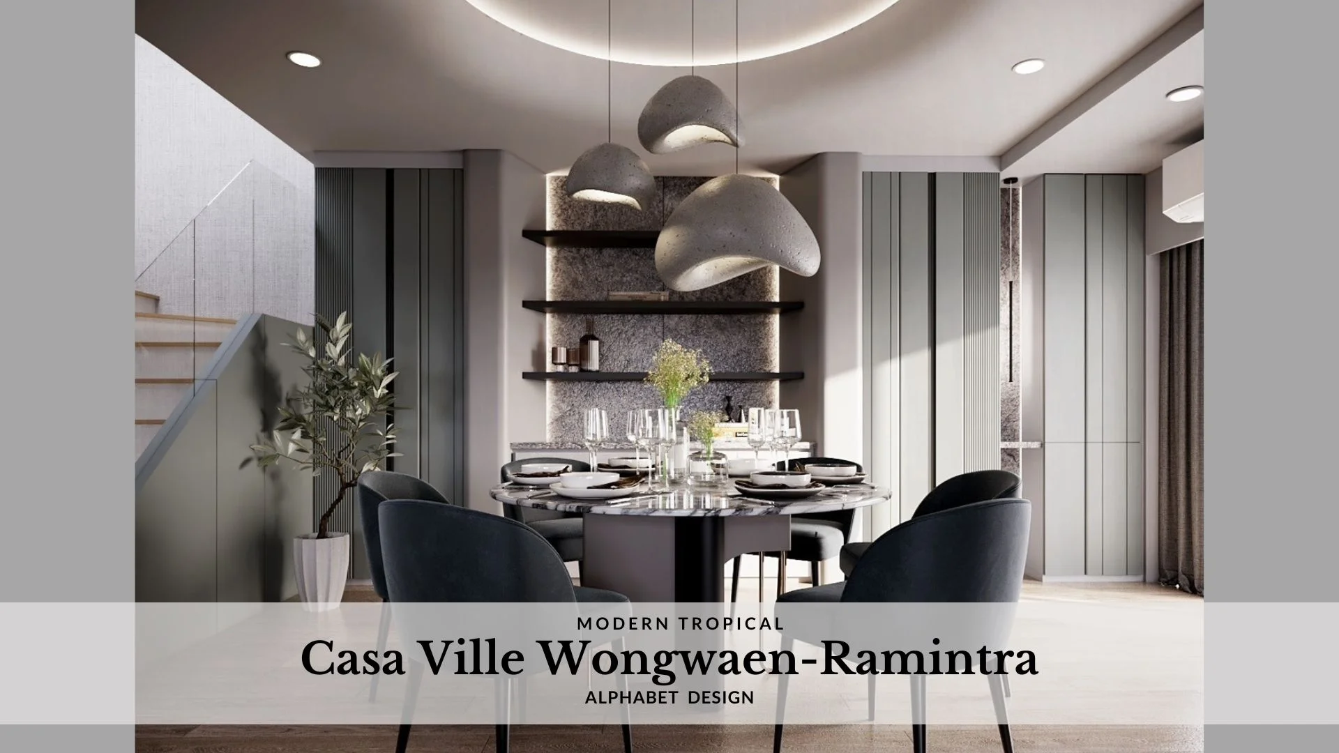 ผลงานการออกแบบตกแต่งสไตล์ Modern Tropical เป็นการตกแต่งบ้านที่มีความกลืนไปกับธรรมชาติ เน้นสีเอิร์ธโทน ด้วยการเลือกใช้เฟอร์นิเจอร์ที่เรียบง่าย ออกแบบมาเพื่อการใช้งานโดยตรง ซึ่งจะให้ความรู้สึกเหมือนอยู่ท่ามกลางธรรมชาติและได้ใกล้ชิดกับธรรมชาติมากยิ่งขึ้น