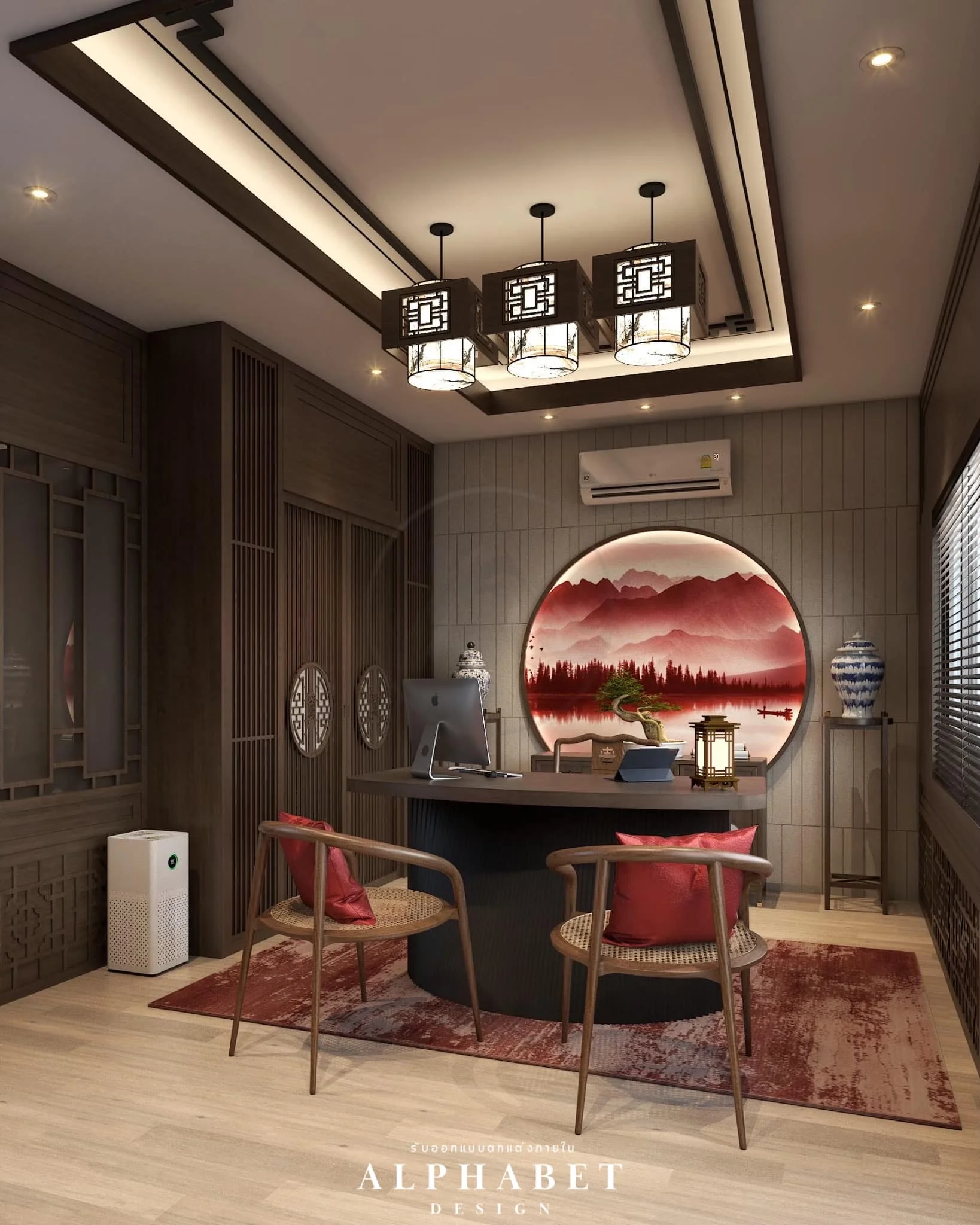 ผลงานการออกแบบที่ถ่ายทอดเรื่องราวสายสัมพันธ์ไทย-จีน ผ่านงานดีไซน์ที่ยังคงมีกลิ่นอายความเป็นเชื้อสายจีน ผสมผสานจุดร่วมของวัฒนธรรมแบบเก่ากับแบบใหม่ให้ออกมาเป็น ” Modern Chinese “