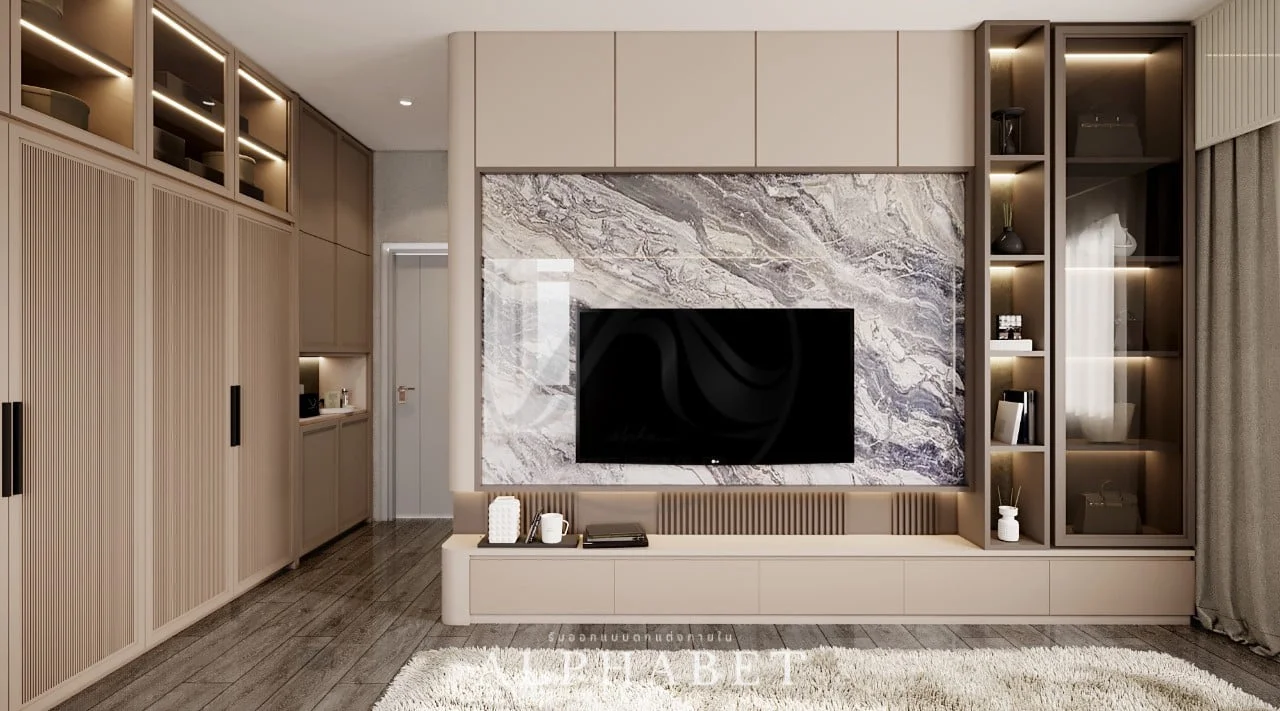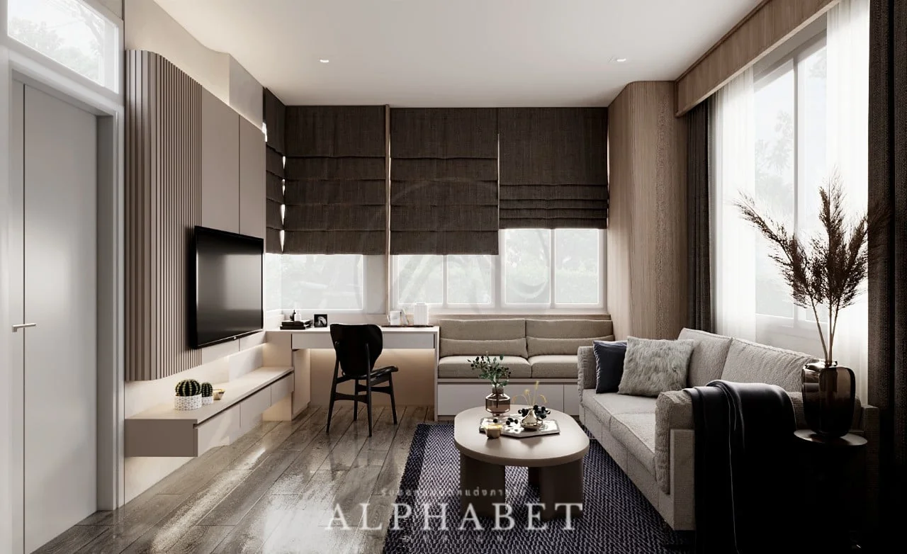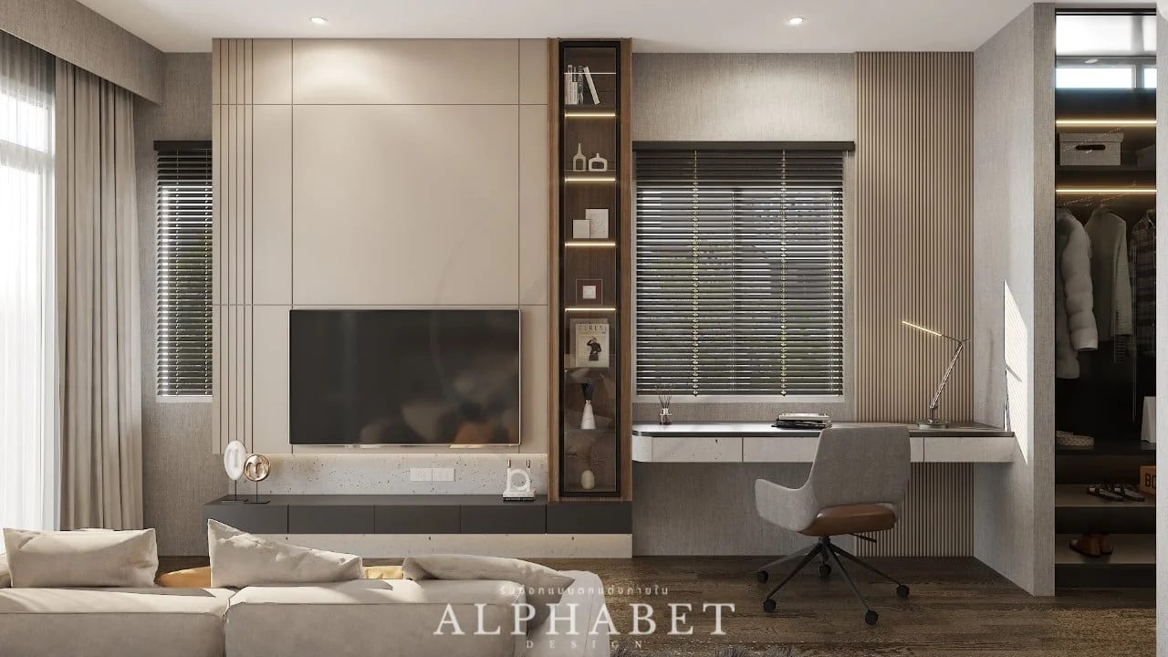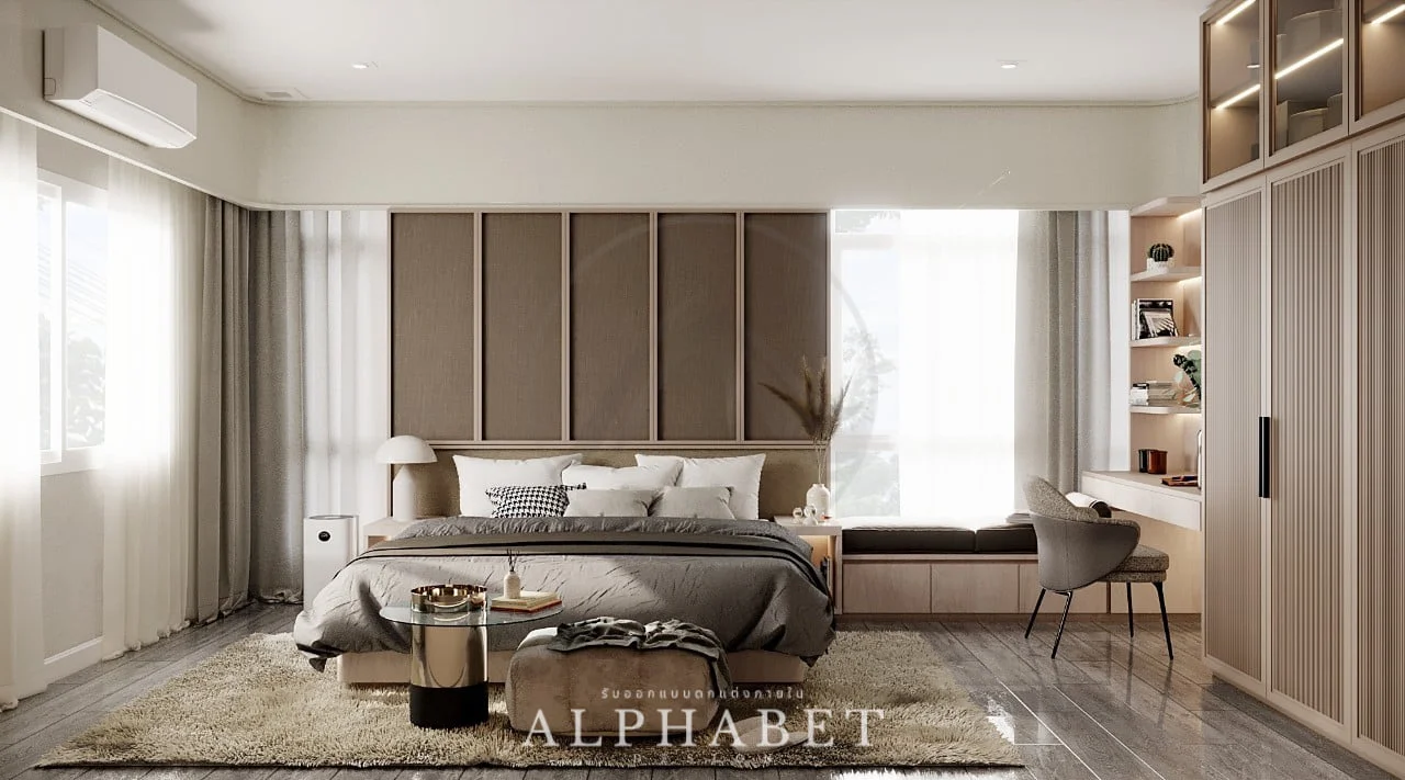 ผลงานดีไซน์สไตล์โมเดิร์น บ้านหลังนี้เราตั้งใจทำบ้านให้เป็นศูนย์รวมของครอบครัว เมื่อสมาชิกทุกคนมาอยู่พร้อมกันจะสัมผัสได้ถึงการพักผ่อนที่แท้จริง โทนสีที่เลือกใช้เป็นโทนสีที่ให้ความรู้สึกอบอุ่น สบายๆ และผ่อนคลาย