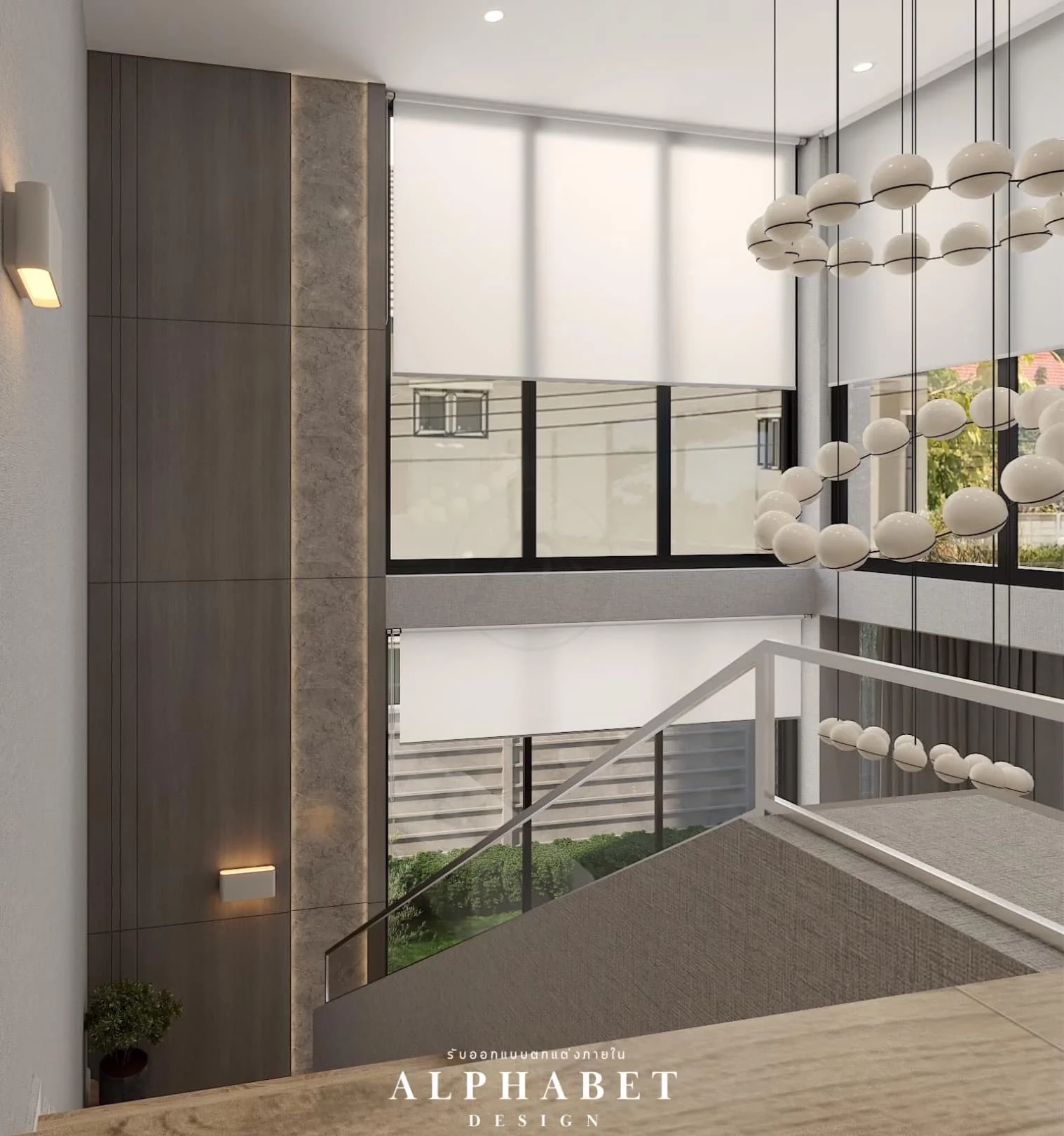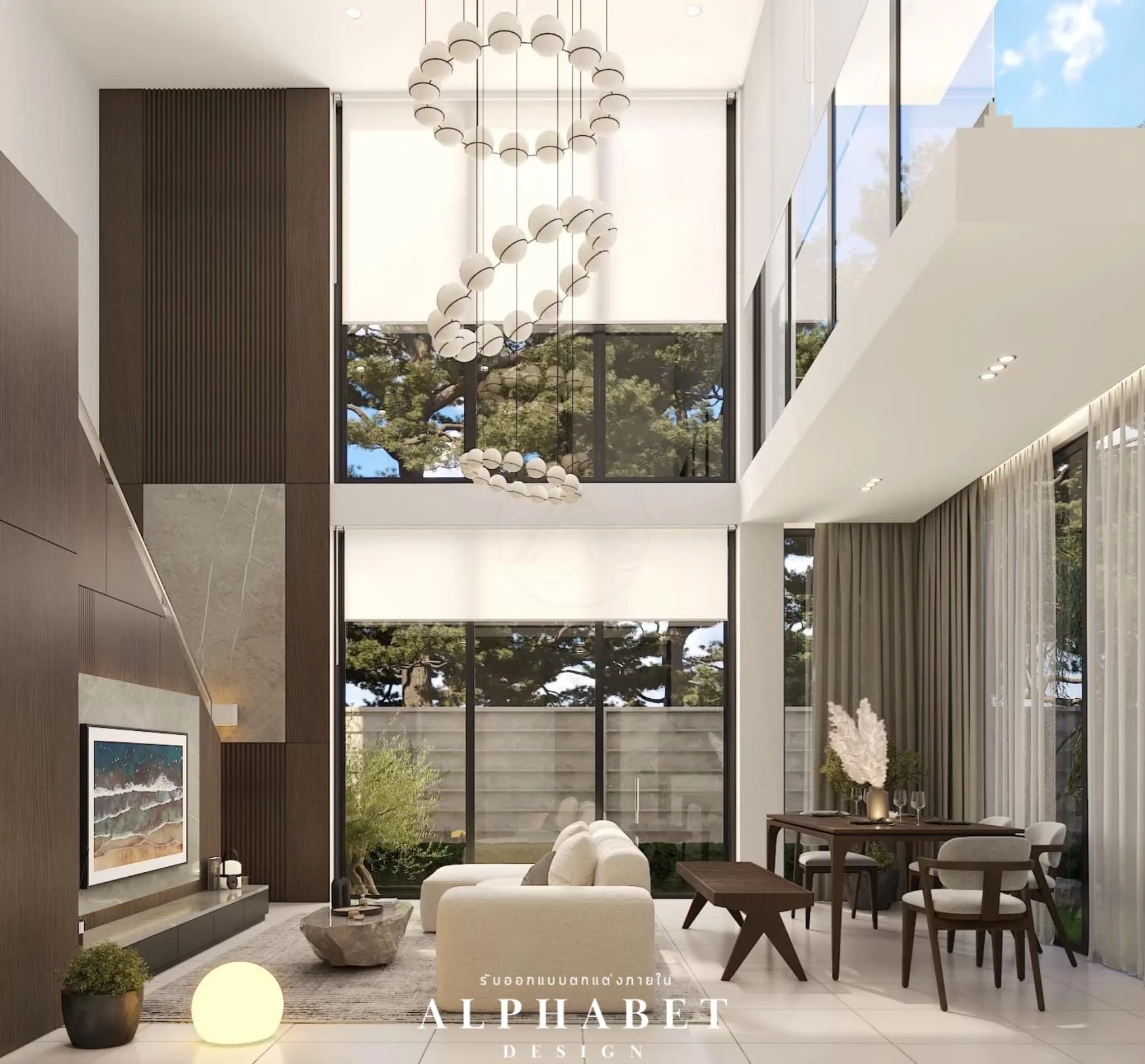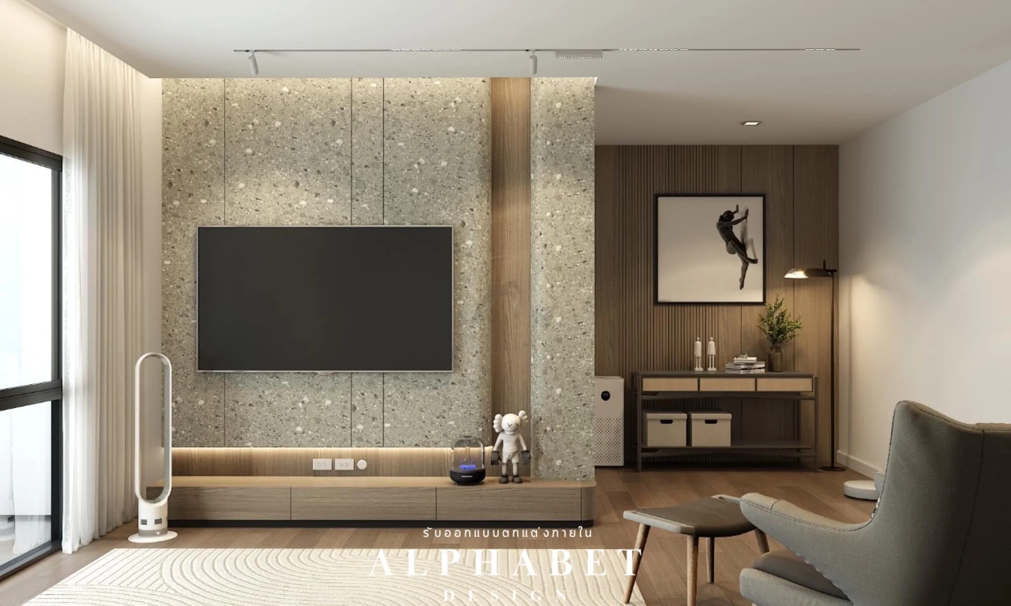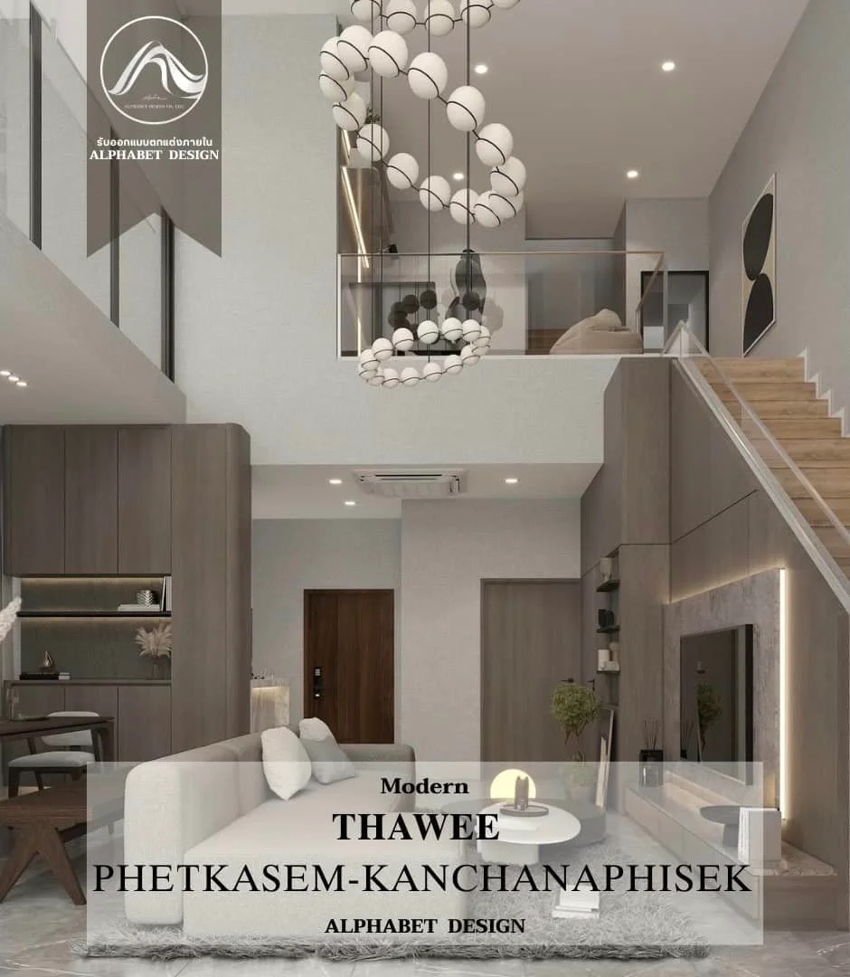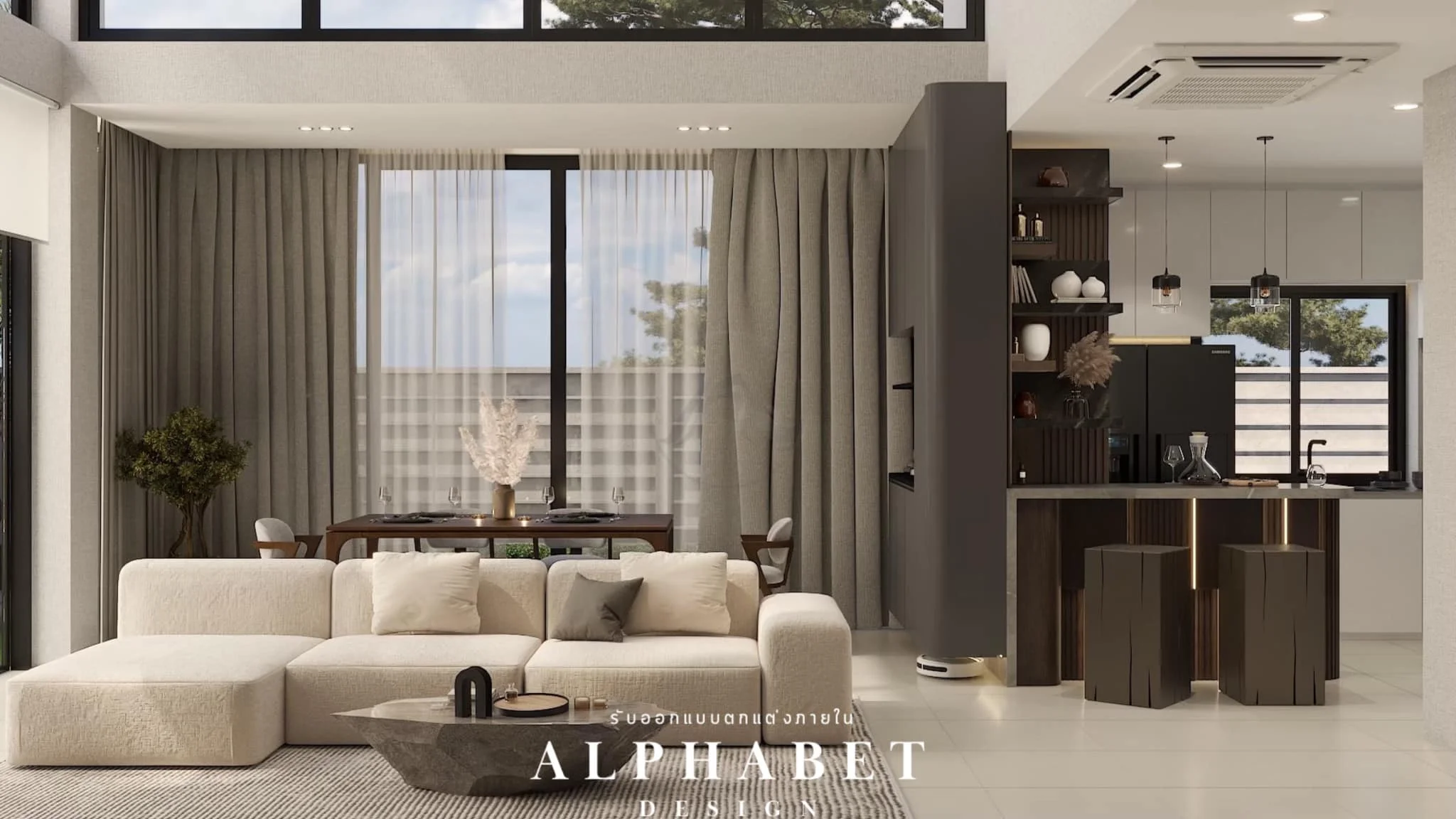 โครงการนี้ทางทีมอินทิเรียได้ออกแบบมาในรูปแบบ Modern ผสมกับ Contemporary ที่มีแนวทางการตกแต่งเป็นกลางๆ มีความหรูหราไม่มากเกินไป โดยการใช้โทนสีเทาพร้อมกับเฟอร์นิเจอร์รูปทรง Classic ให้ดูสะอาดตาและทันสมัยขึ้น จึงทำให้บรรยากาศภายในบ้านมีความรู้สึกอบอุ่นใจ ผ่อนคลาย สบายตา ไม่ว่าจะมองมุมไหนของบ้านก็มีความสุข
